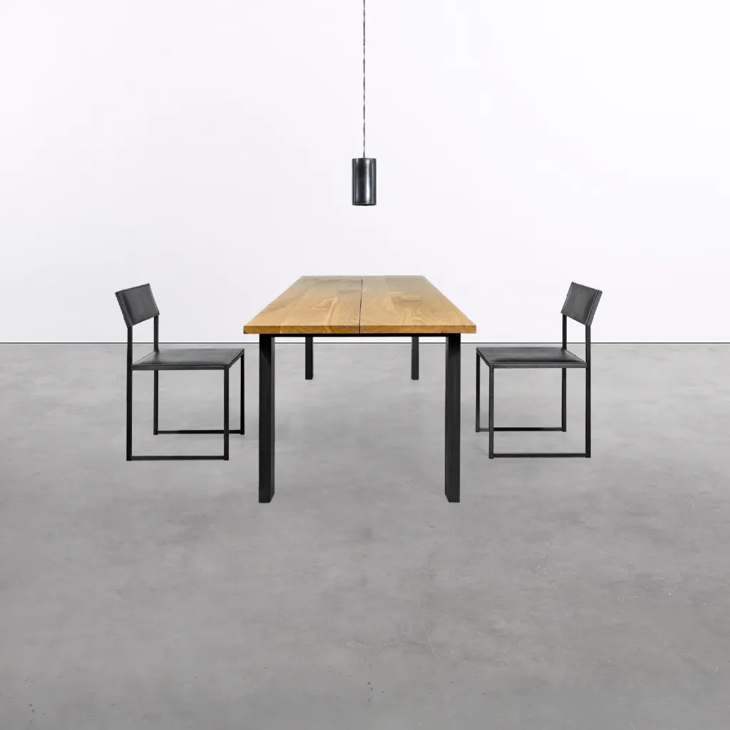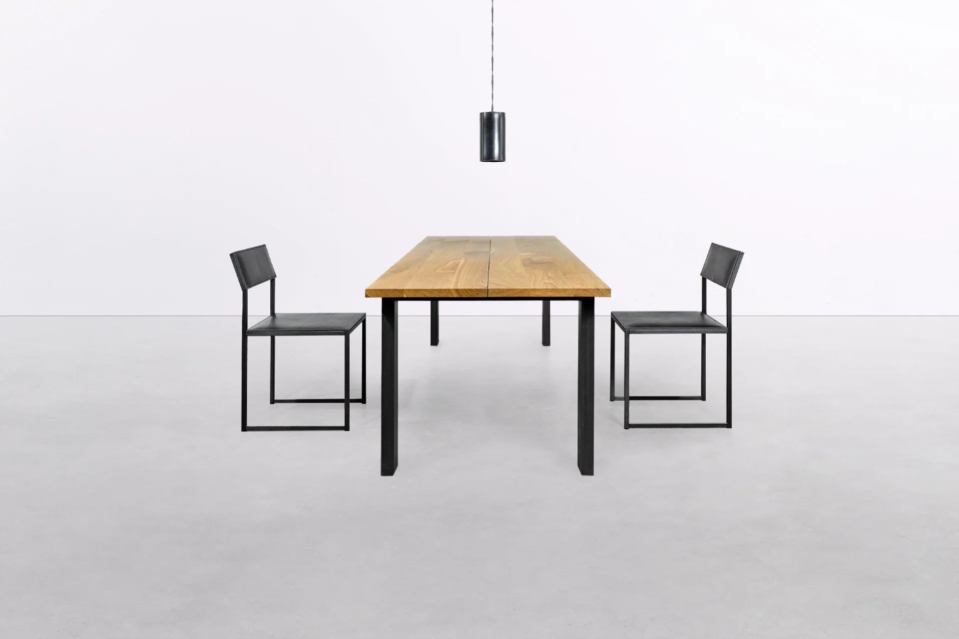 The oiled table top is made of solid, glued wood with a thickness of 32 mm.