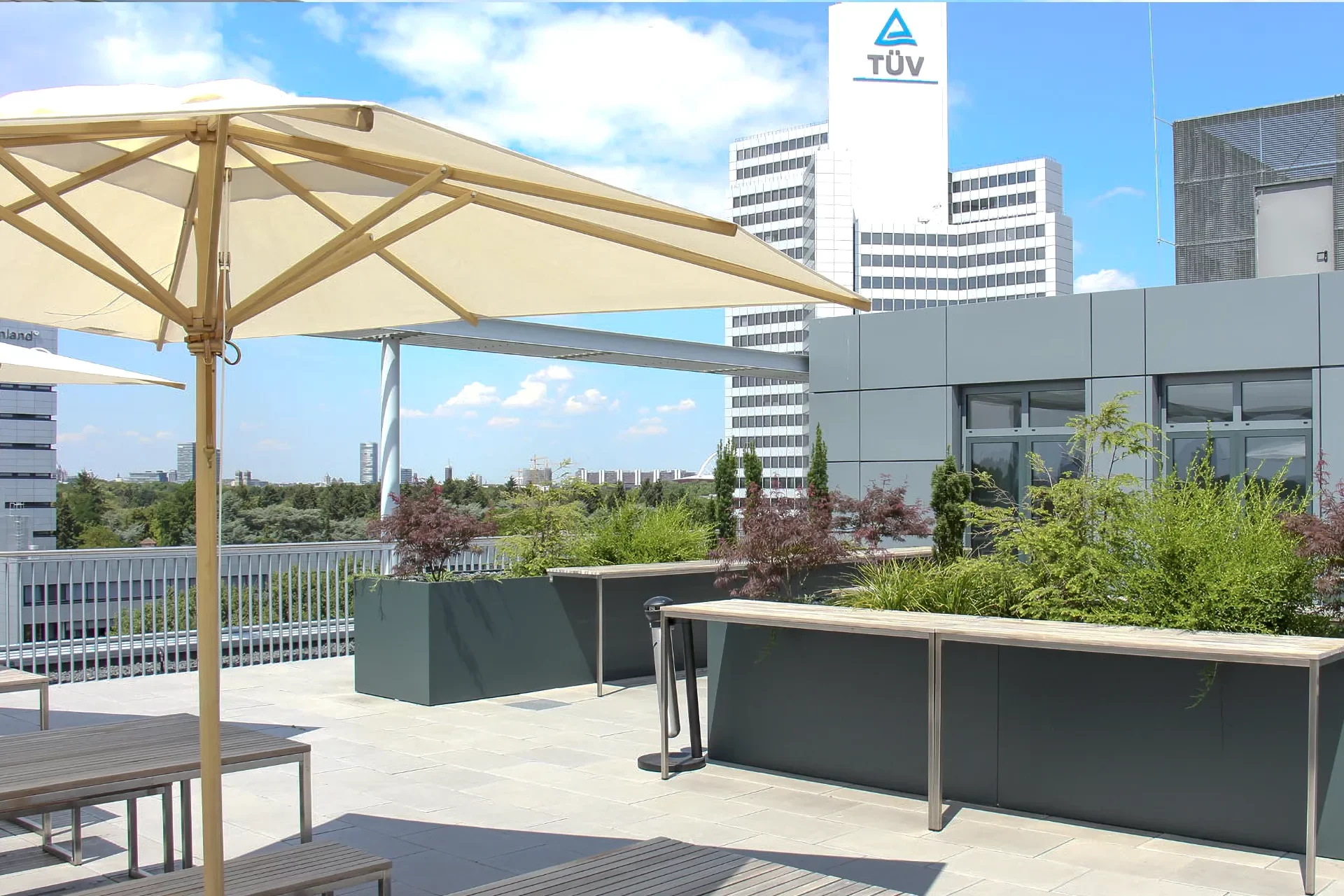 Für das Unternehmen TÜV Rheinland in Köln wurden Möbel für die Dachterrasse aus unserer Kollektion ausgewählt.